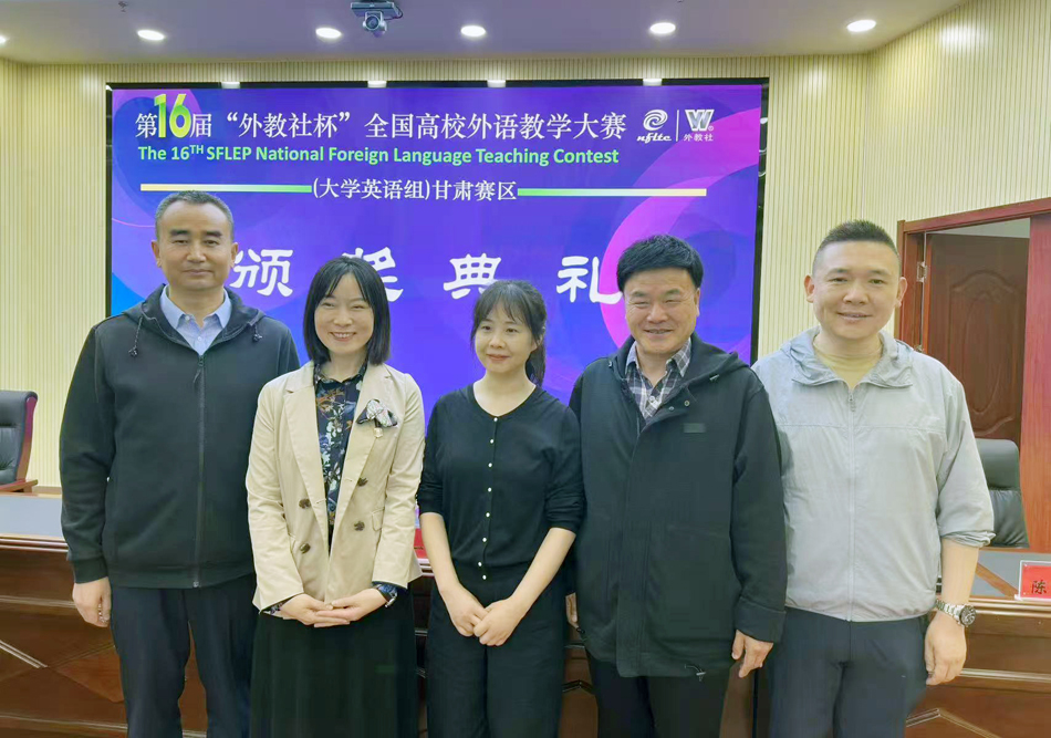 第十六届“外教社杯”全国高校外语教学大赛(大学英语组)甘肃赛区比赛于6月22日在甘肃民族师范学院圆满落下帷幕。我校外国语学院杨慧文老师荣获视听说组二等奖,李迪迪老师荣获综合课组三等奖。