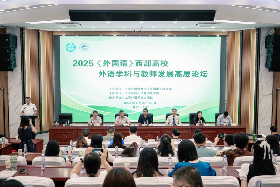6月27日至29日,2025《外国语》西部高校外语学科与教师发展高层论坛在我校举行。本次论坛以“教育强国,外语何为”为主题,旨在探讨面向教育强国目标,外语有关学科和外语教育如何作为,如何应对机遇与挑战并存的国际形势和人工智能技术的快速发展,如何实现外语教育生态系统的转变等。论坛由上海外国语大学《外国语》编辑部主办,天水师范大学外国语学院承办,上海外语教育出版社协办。天水师范大学党委常委、副校长左国防,《外国语》主编束定芳教授出席论坛开幕式。开幕式由天水师范大学外国语学院院长杨江锋主持。
