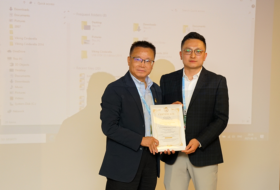 协会还授予杜伟良年度技术创新奖(IAAM Innovation Award),以表彰其在陶瓷和复合材料领域作出的突出贡献。会议期间,欧洲科学院院士、中国工程院有效院士候选人、国家杰出青年基金获得者王清远教授为杜伟良颁发该奖项。