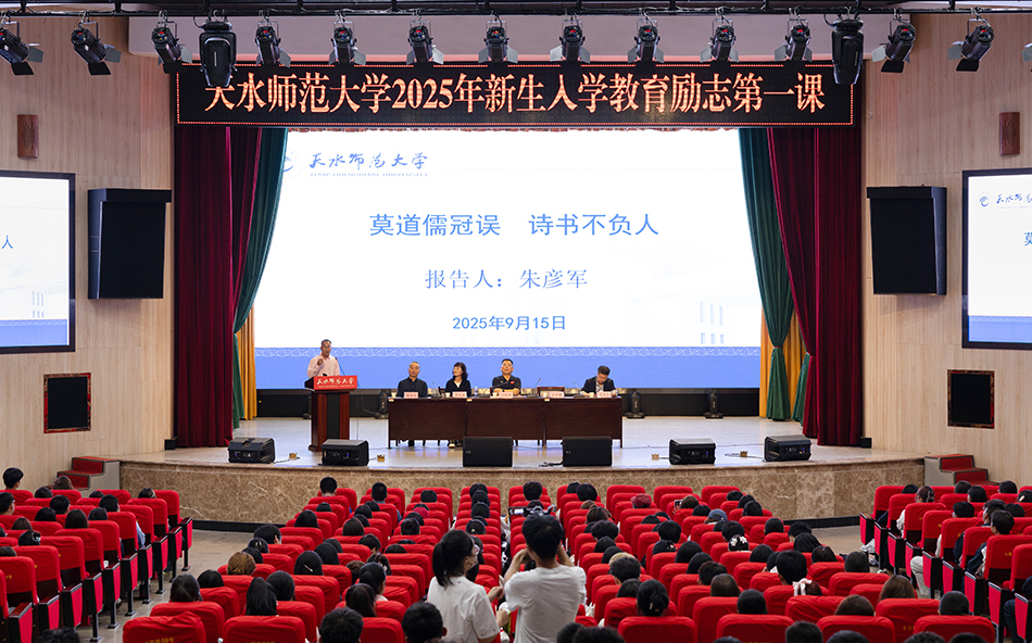 9月15日,天水师范大学在大礼堂举办2025级新生入学教育“励志第一课”活动。活动以“心若向阳,花自盛开——拼搏让生命绽放光芒”为主题,通过榜样分享、诗词互动和领导寄语等环节,为600余名新生带来了一场温暖而深刻的青春励志课。