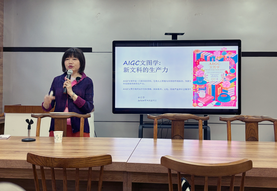 6月19日晚,衣若芬作题为《AIGC文图学:新文科的生产力》的讲座。作为“文图学”理论的创发者,她首先阐述了“文本与图像的互动关系”,指出文图学应用已突破传统文学与美术领域,延伸至日常生活的多模态信息传播中。并围绕“人工智能浪潮下,AIGC如何成为文学与人文学科研究‘新动力’”这一核心议题,详细展示了文科与AI融合的路径及成果。最后,衣若芬严肃提出了AIGC伴随的伦理风险,通过未成年人沉迷AI虚拟伴侣导致极端后果的案例,警示情感依赖对认知的潜在侵蚀,呼吁建立“科技人文主义”框架,明确工具服务于人的主体性原则。