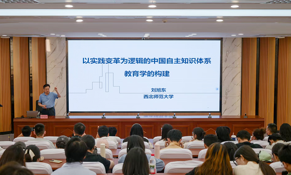 8月30日下午,西北师范大学刘旭东教授应邀在我校一号报告厅作题为《以实践变革为逻辑的中国自主知识体系教育学的构建》的学术报告。报告由教师教育学院吴彦文教授主持,学校200余名师生代表到场聆听。