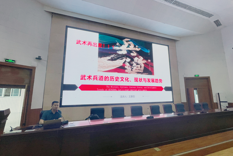 6月17日,武术兵道专家文善恬教授应邀作题为《武术兵道的历史文化、现状及发展趋势》讲座。文善恬深耕传统武术领域,其学术报告将系统解读兵道文化脉络与当代实践,为师生提供深度学术滋养,助力武术运动的校园传承与学科创新。