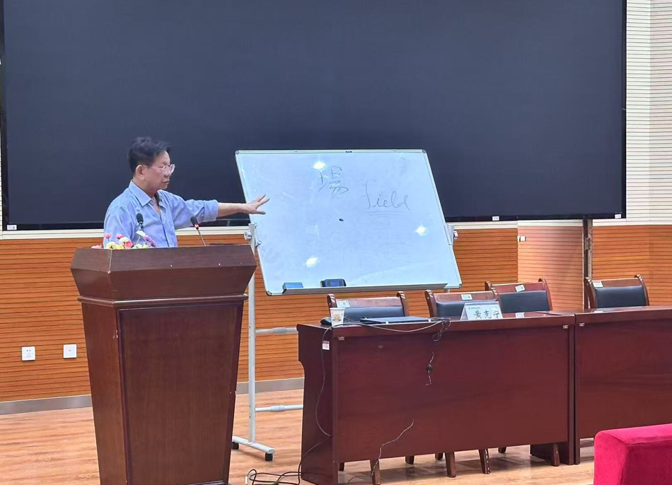 讲座的主题为“多元视角下的传统文化”。黄克宁以原子结构及动力理论新视角研究哲学层面的阴阳动态问题。黄克宁在讲座中举重若轻,拨开云雾,引领师生们看到“量子纠缠”的本质,浅显易懂地阐释出“高深莫测”的量子知识与传统文化之间内在逻辑关系,这些亮点满载着黄教授多年的思索精华。