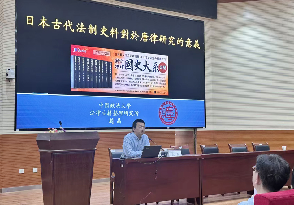 赵晶展示了大量的甲骨文、敦煌壁画、历史影像等图像资料,详细阐释了日本古代法制史料对于唐律研究的意义,并介绍了文物与文献相互印证的研究方法。同时就师生提出的法制史史料收集、古代外来法律文化影响等问题进行了详细解答。