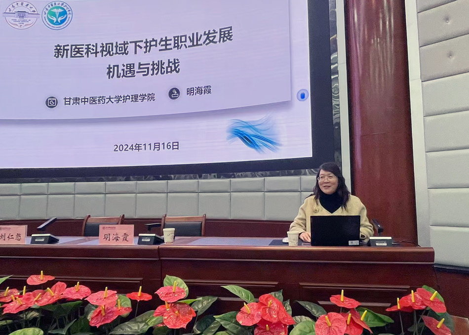 应卫生健康学院邀请,11月16日下午,甘肃中医药大学护理学院院长明海霞教授来校作题为《新医科视域下护生职业发展机遇与挑战》的讲座。卫生健康学院、天水市卫生学校师生共200余人参加。