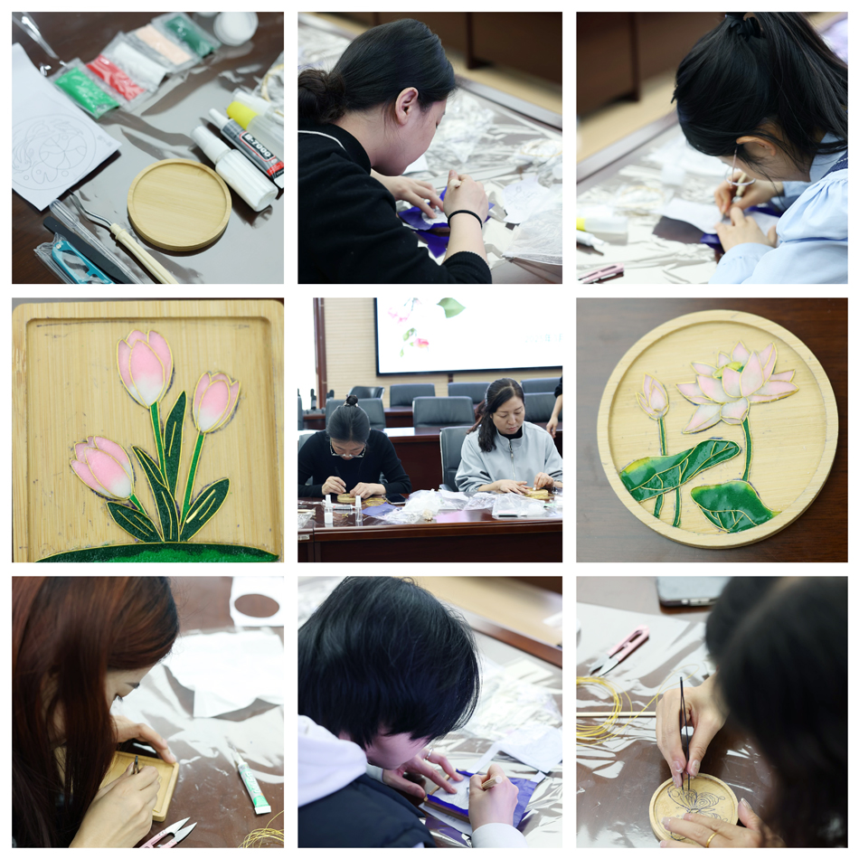 为庆祝第115个国际劳动妇女节,3月10日,学校机关工会一小组举办掐丝珐琅手做活动,活动旨在丰富女职工的精神文化生活,让大家在动手实践中感受传统文化的魅力。