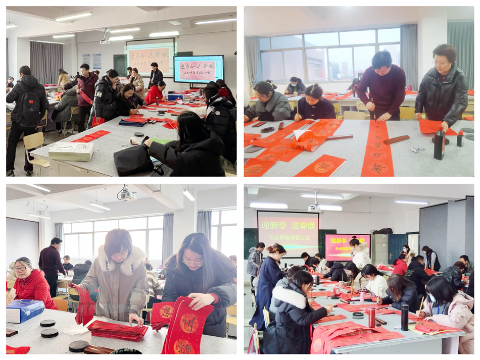 为喜迎新春佳节,满足教职工春节贴春联的需求,营造欢乐祥和的节日气氛,1月9日,校工会在4号教学楼505教室举办 2025年“迎新春 送春联”活动。