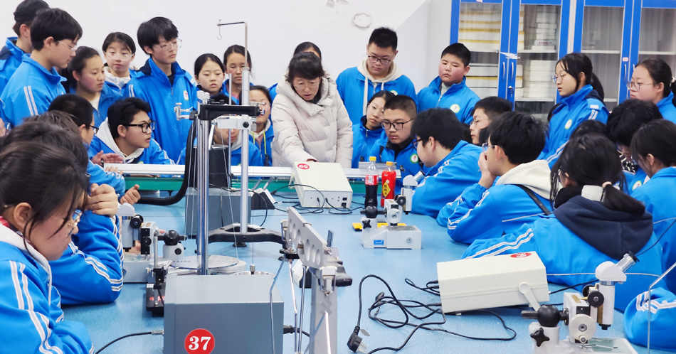 活动当天,在物理学教工党支部党员教师的精心组织和热情接待下,学生们分组参观了各个实验室,并参与了丰富有趣的物理实验。在力学实验室,学生们通过亲手操作滑轮组、斜面小车等实验装置,深入了解了力学的基本原理和实际应用。在光学实验室,学生们通过三棱镜观察到了光的色散现象,利用凸透镜和凹透镜探究了成像规律,对光的传播和折射有了更直观的认识。在电磁学实验室,学生们更是被电磁感应、静电感应等实验深深吸引,他们通过动手实验,感受到了电磁场的神奇魅力。除了演示实验外,学生们还亲自参与了学生实验。在教师的指导下,他们分组设计并完成了简单的电路连接、滑块碰撞、透镜焦距测量等实验项目。不仅锻炼了学生们的动手能力和团队协作能力,还培养了他们的科学思维和解决问题的能力。