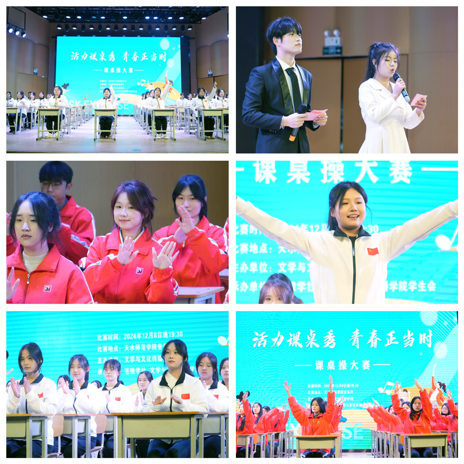 为进一步丰富校园文化,缓解学生学习压力,12月8日,文学与文化传播学院在音乐厅举办“活力课桌秀,青春正当时”课桌操大赛。2023级、2024级的19个班级近800名同学参加活动。