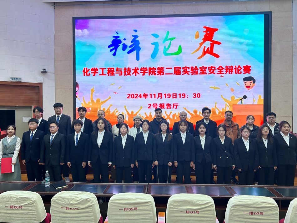 为进一步提高学生实验室安全防范意识,切实维护好校园安全,11月10日至19日,化学工程与技术学院举办第二届实验室安全辩论赛。辩论赛半决赛和决赛于11月19日晚在二号报告厅举办,学院领导班子成员、辅导员、实验室负责人、2024级班主任及2024级全体学生共300余人参加。