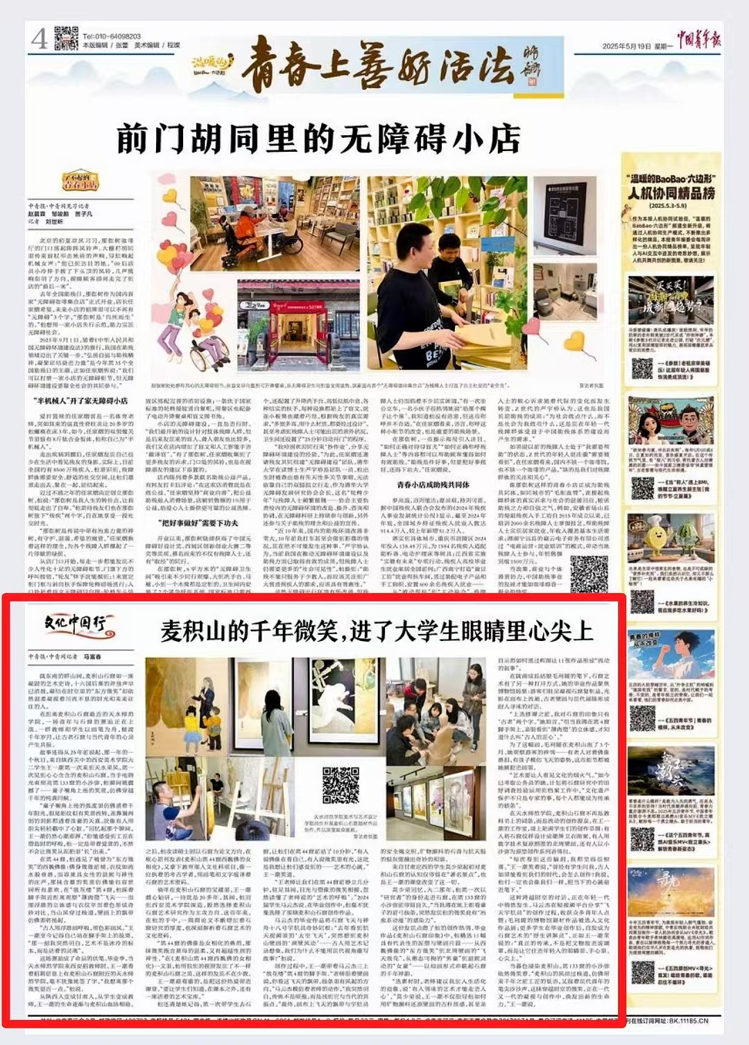 当暮色浸染麦积山,第133窟的小沙弥依然微笑着。“麦积山的风掠过栈道,仿佛带来千年之前工匠的低语,又混着现代青年的笔尖沙沙声。这抹穿越时空的微笑,正在一代又一代的凝视与创作中,焕发出新的生命力。”王一潮说。(中青报·中青网记者 马富春 来源:中国青年报 2025年05月19日 04版)