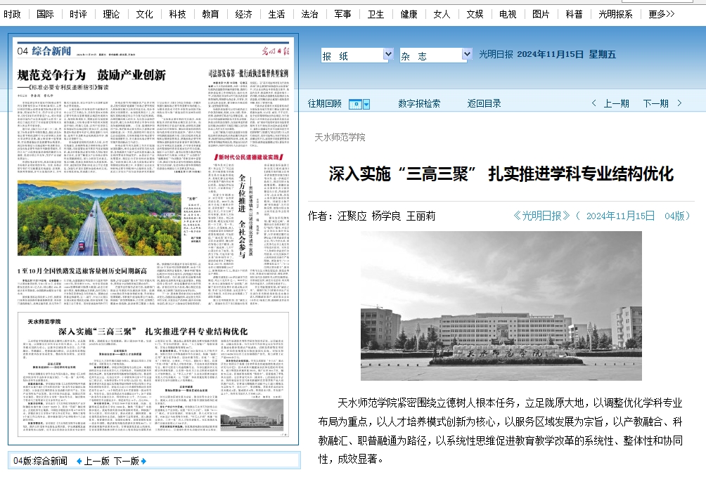 创新培养模式。学校修订2024版专业人才培养方案,加强汉语言文学等基础学科专业建设,构建“基础+应用”复合培养体系。创办伏羲书院,实施“一制三化”(导师制、小班化、个性化、国际化)模式,探索“书院+学院”新型人才培养机制。开设商务英语等辅修专业、数字化贸易与沟通等微专业,为学生提供多元化跨学科课程资源。以本硕一体化为立足点探索卓越教师人才培养模式,以“华天人才班”为出发点探索卓越应用型人才培养模式,以“四新”和高质量发展为着眼点探索交叉学科创新型人才培养模式。