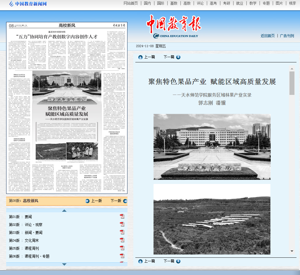 目前,中心承担食品安全社会实践(省级一流课程)、生态学、食品工艺学原理、食品营养学、食品感官评价、发酵工程、植物生理学、农业生物技术概论、果树栽培技术、园艺植物栽培学等课程的教学,重点培养生物与医药专业硕士学位生物技术与工程方向及食品工程研究生。通过“产教、科教”双融合体系,培养园艺、食品质量与安全、生物技术、生物科学等专业本科生1000余人;本科生获国家、省级大学生创新创业项目20余项,获国家、省级学科专业竞赛二等奖30余项,其中,1名学生获得“李政道”奖学金。同时,通过青年教师导师制,培养技术骨干15人,其中入选甘肃省优秀专家、飞天青年学者、陇原青年英才等省市人才计划10人。中心高度重视乡村产业振兴所需人才的培养,紧密结合乡村振兴与建设现状,全面推进多方协同育人,全力培育服务乡村产业振兴的应用型乡土人才,通过结对帮扶培养取得认证的高级农艺师、天水市乡土人才、天水工匠等乡土人才25人次,培养农业技术骨干120余名,培训果农、新型经营主体骨干万余人次。天水市秦州区藉口镇四十铺村农民赵社教是中心培养的优秀乡土人才代表,已成为天水乃至甘肃省著名的果树种植能手,先后获“天水工匠”“天水市乡土人才”“甘肃省技术标兵”等称号,2021年被甘肃省人社部门评为农民高级农艺师,在新技术的示范推广应用中发挥着重要作用。