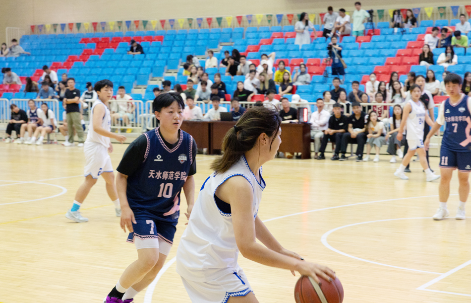 郑海霞、王立彬观摩了天水师范大学男女篮的教学比赛。赛场上,球员们活力四射、积极拼抢,展现出青年学子的激情和对篮球的热爱。两位篮球名宿专注地观看比赛,不时交流着对球员们表现的看法。