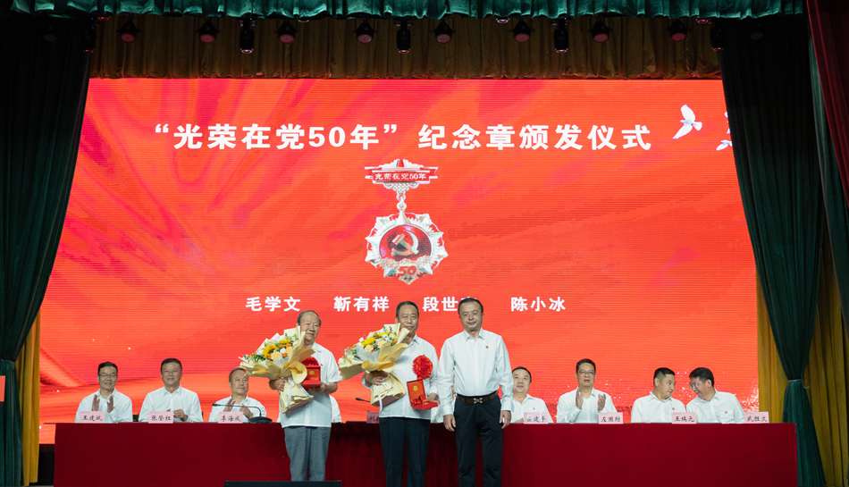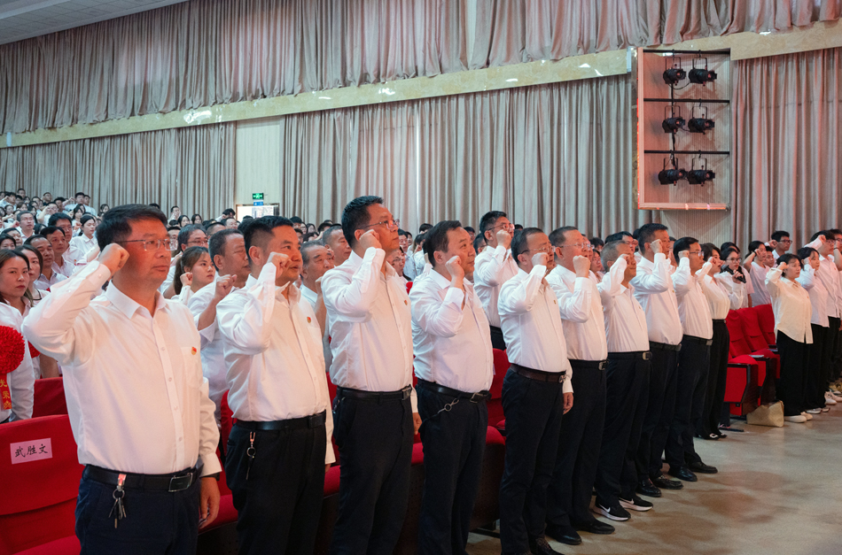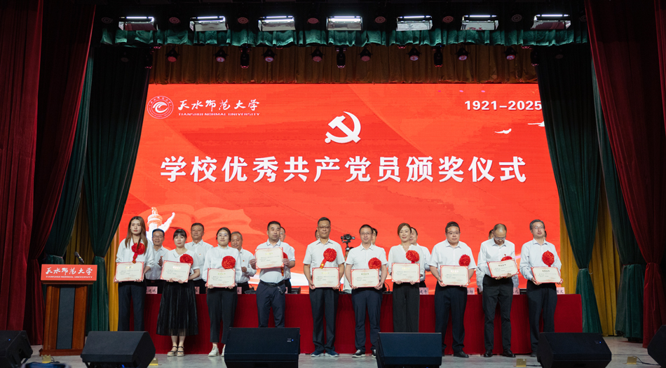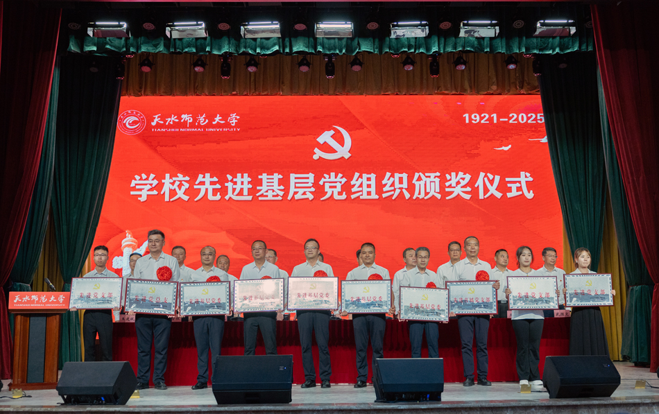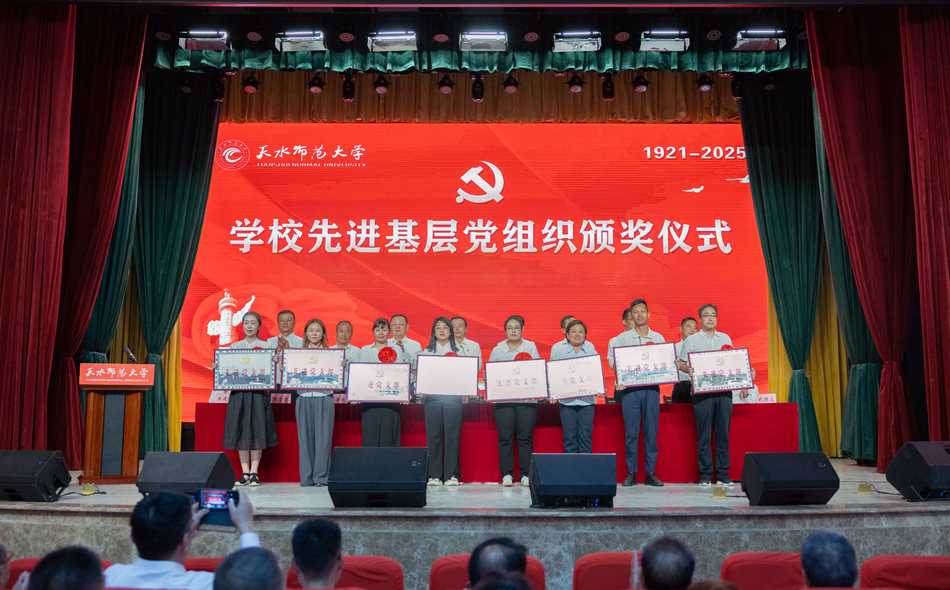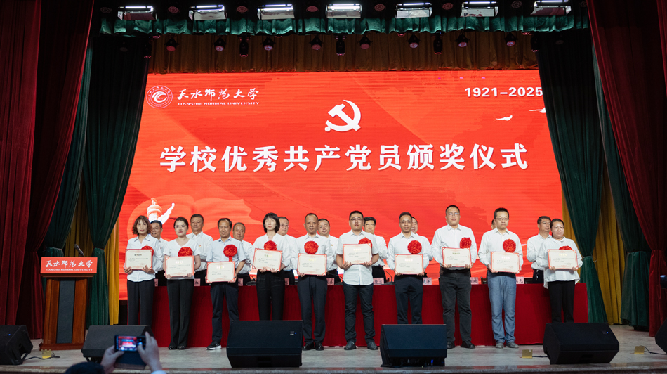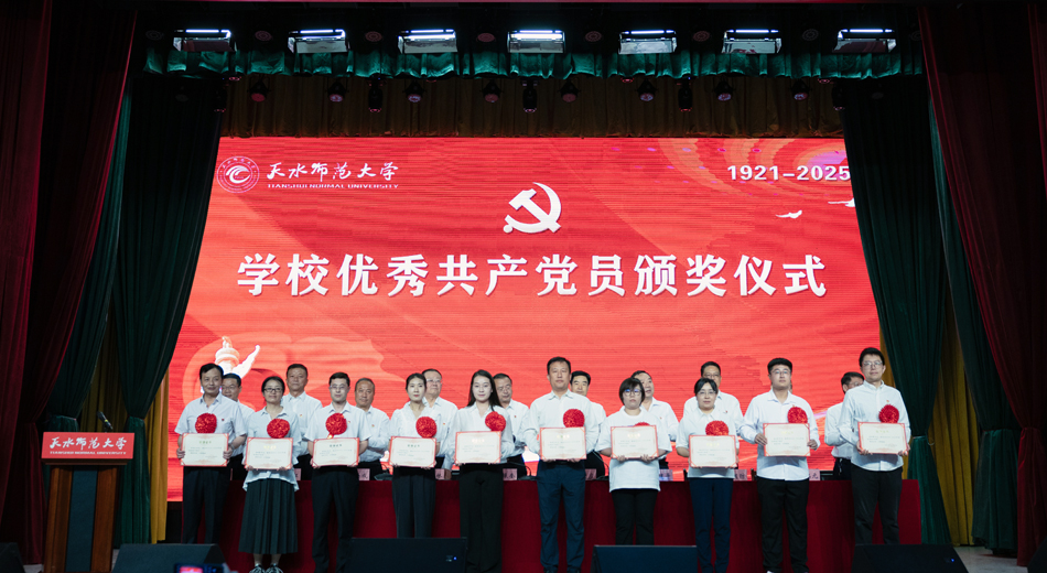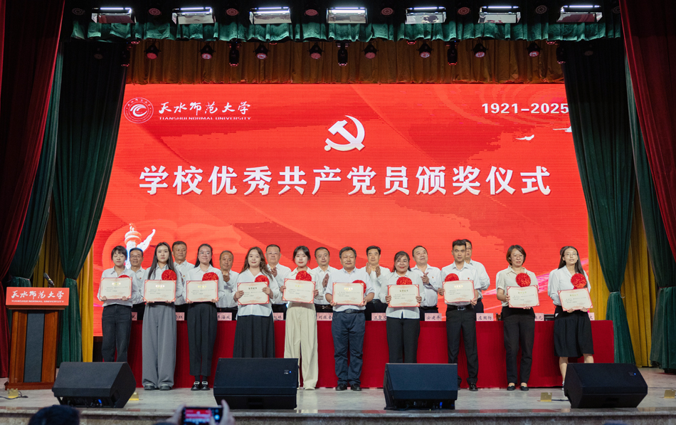 大会在雄壮的国歌声中拉开帷幕,全体党员重温入党誓词。刘振奎为老党员颁发“光荣在党50年”纪念章。党委副书记李海成宣读了《中共天水师范大学委员会关于表彰2023-2025年度先进基层党组织、优秀共产党员和优秀党务工作者的决定》。出席会议的领导为受表彰的优秀个人和先进集体颁奖。