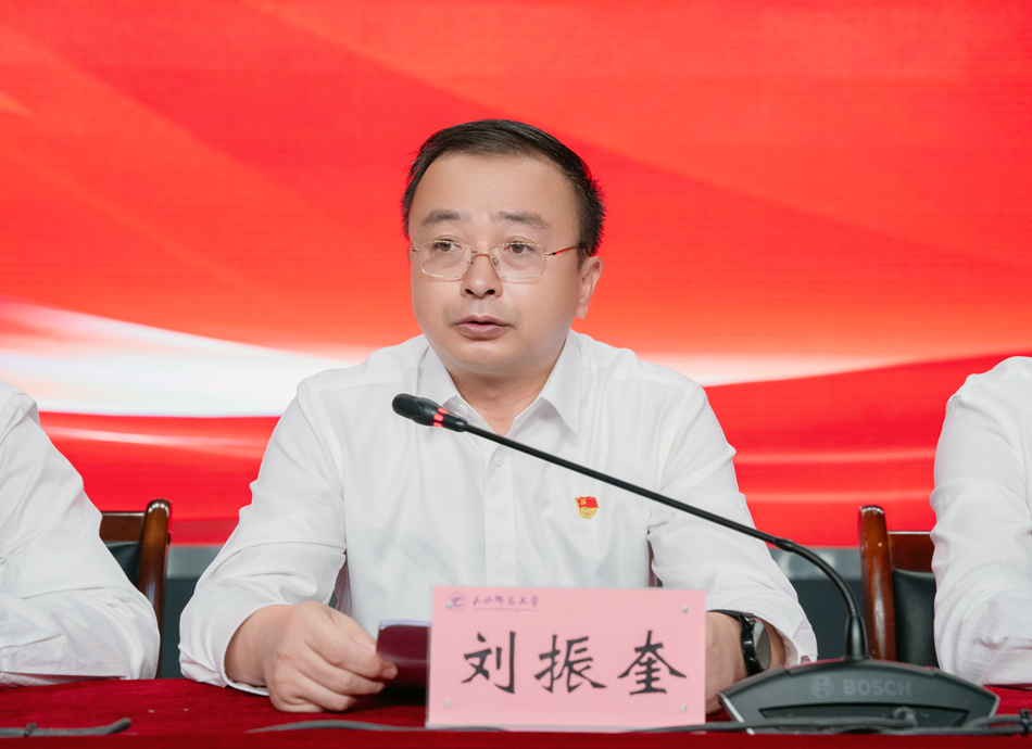 刘振奎强调,学校更名大学目标已顺利实现,博士点建设进入关键阶段,本科教育教学审核评估工作即将接受教育部专家进校评估考察。全校各级党组织和党员干部要坚定信心、提振精神,着力推进各项工作再上新台阶、实现新突破。一是坚定理想信念,筑牢政治忠诚,深入学习贯彻习近平新时代中国特色社会主义思想,做新时代新思想的信仰践行者;二是弘扬党的光荣传统,在教书育人、科研创新中践行初心使命,做伟大建党精神的坚定传承者;三是勇于担当作为,围绕重点任务建设目标,在推动学校事业高质量发展中攻坚克难,做改革创新的积极开拓者;四是坚守人民立场,服务国家战略需求,以实干实绩为教育强国建设贡献力量,做民族复兴的不懈奋斗者。