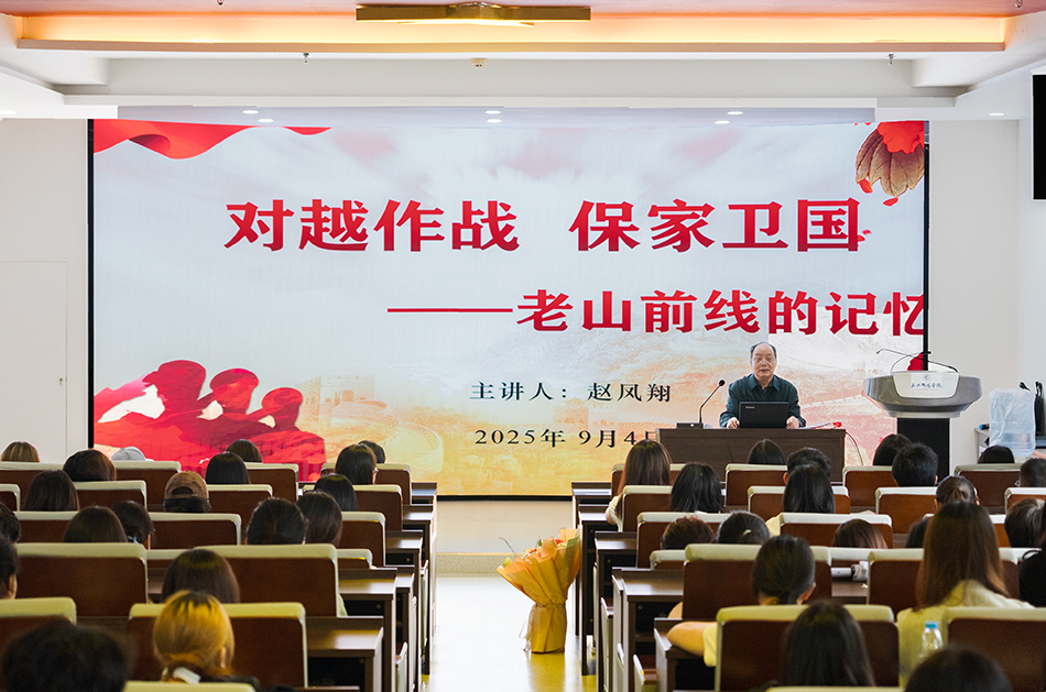 在红色文化教育体验馆,老山战役参战老兵、军休干部、原61师政治部秘书科科长赵凤翔以亲身经历回顾战火岁月。他聚焦“忠诚、团结、牺牲”三个关键词,生动讲述了信仰的力量与军人的血性担当,引导青年学生在具体情境中深刻体悟家国大义与责任担当。