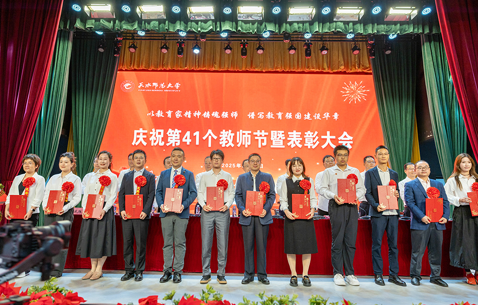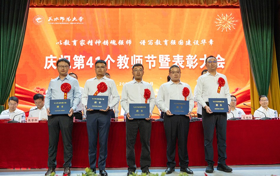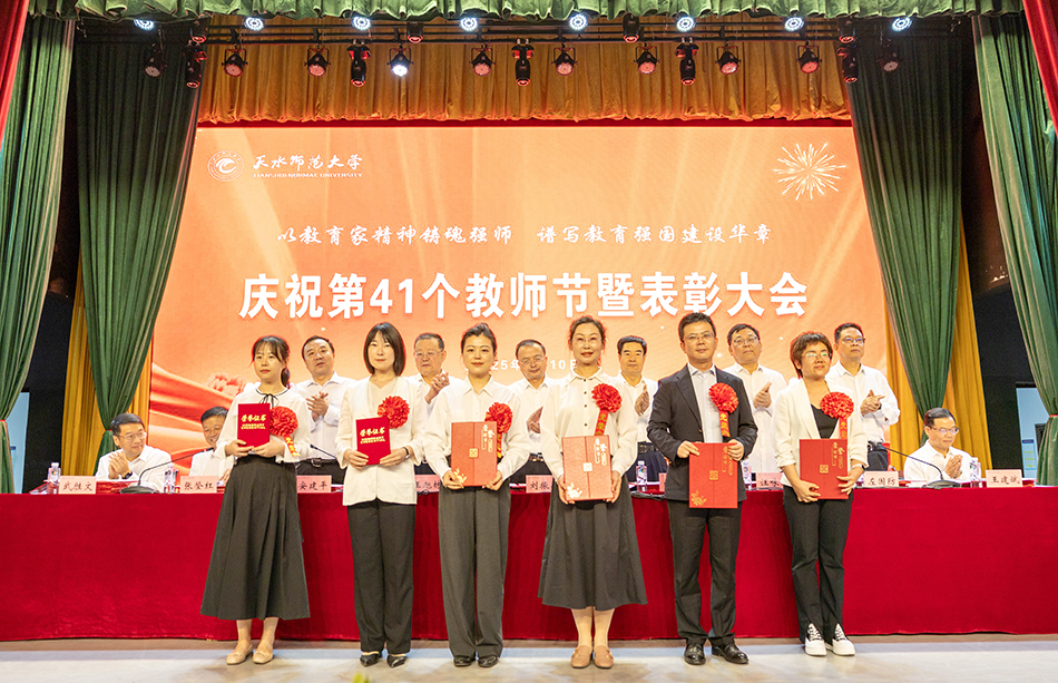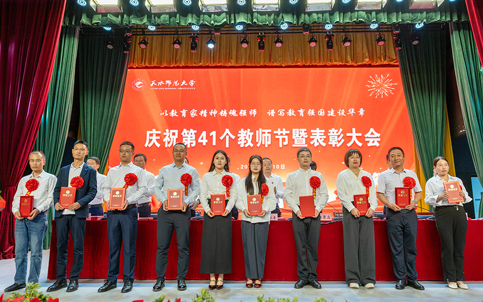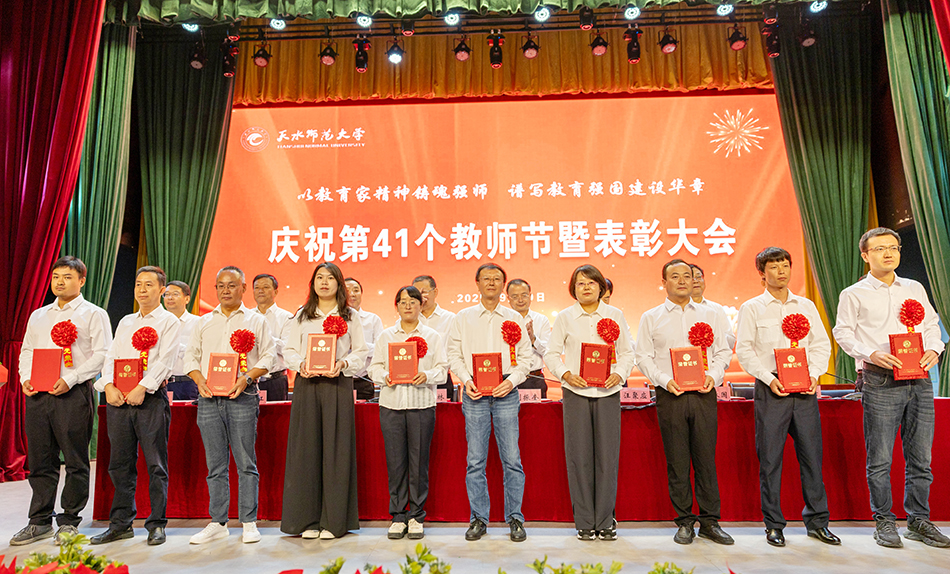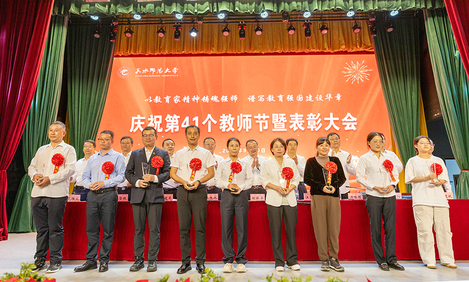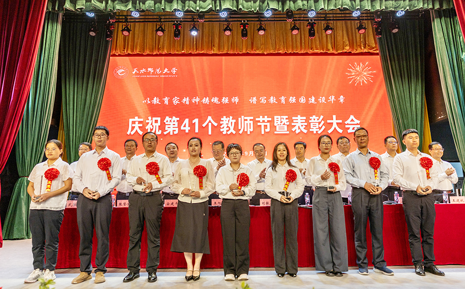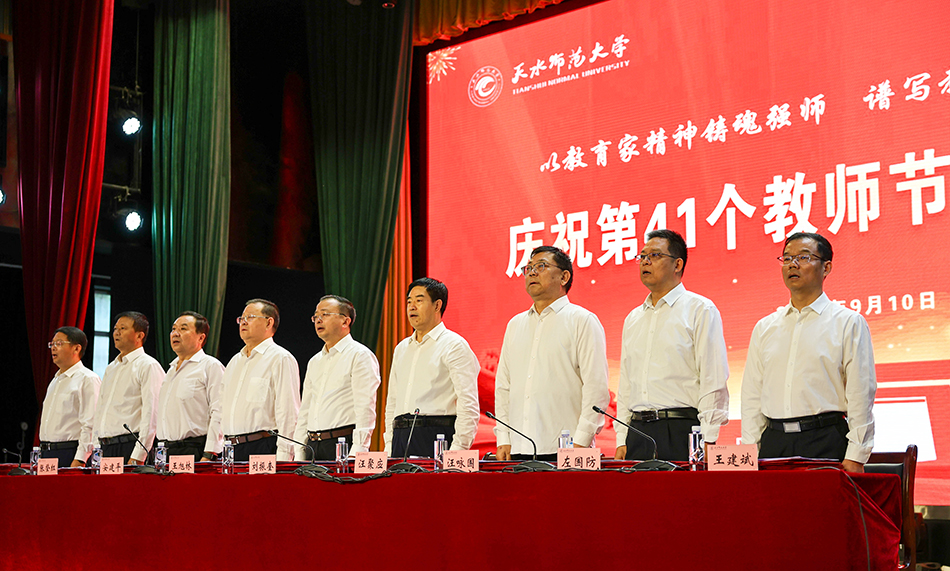 9月10日下午,天水师范大学在学校大礼堂隆重举行庆祝第41个教师节暨表彰大会。校党委书记刘振奎、校长汪聚应、在校党委常委出席。获奖教师、从教30年教师、教职工代表、新入职教师和学生代表等共600余人参加。大会由汪聚应主持。