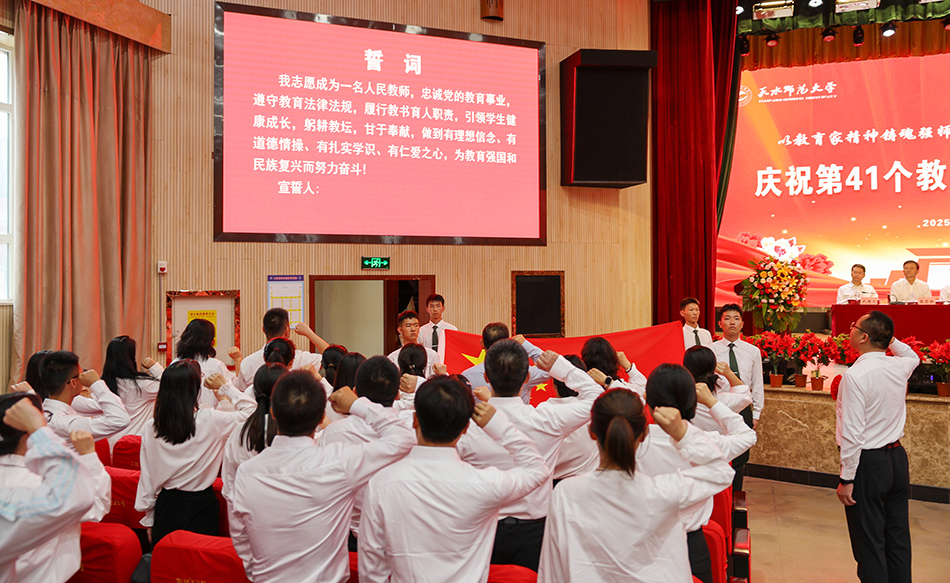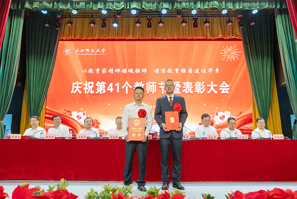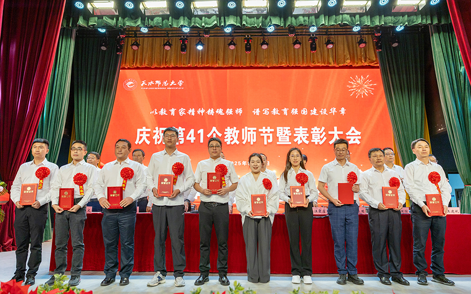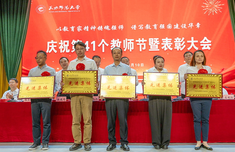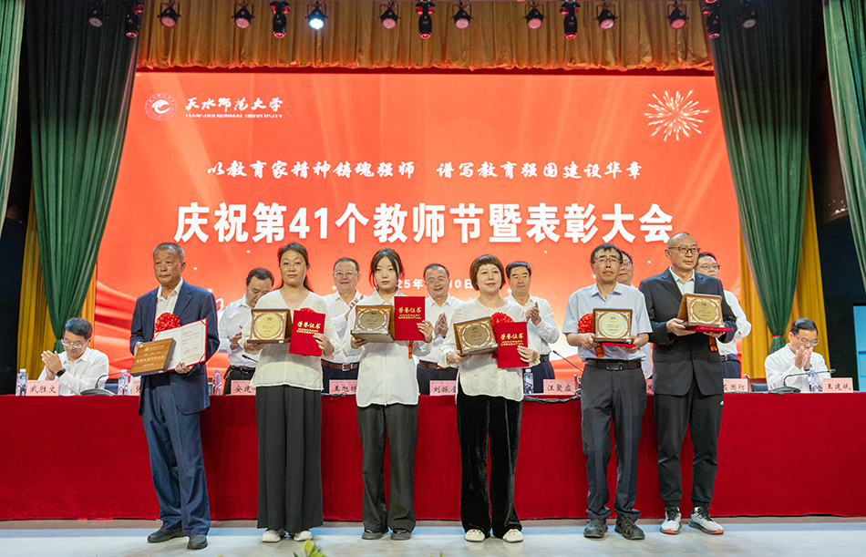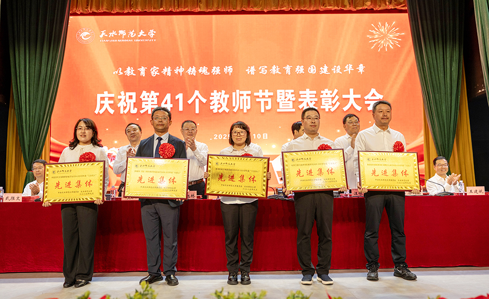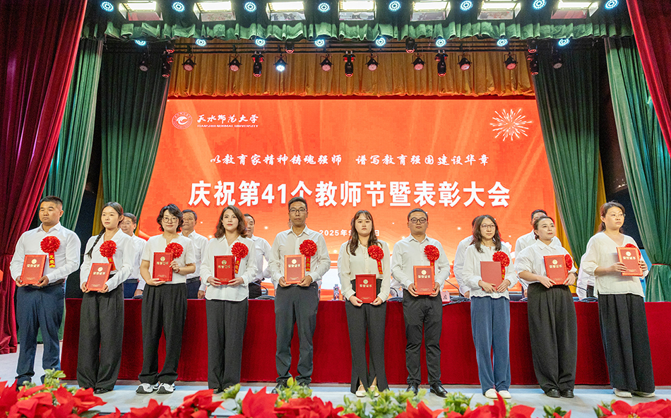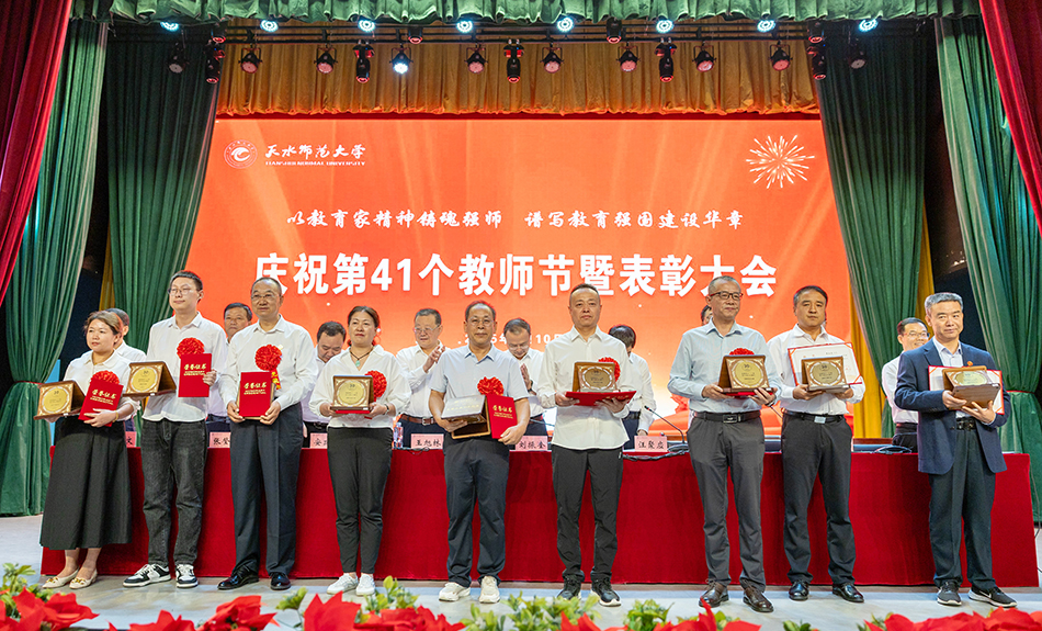 9月10日下午,天水师范大学在学校大礼堂隆重举行庆祝第41个教师节暨表彰大会。校党委书记刘振奎、校长汪聚应、在校党委常委出席。获奖教师、从教30年教师、教职工代表、新入职教师和学生代表等共600余人参加。大会由汪聚应主持。