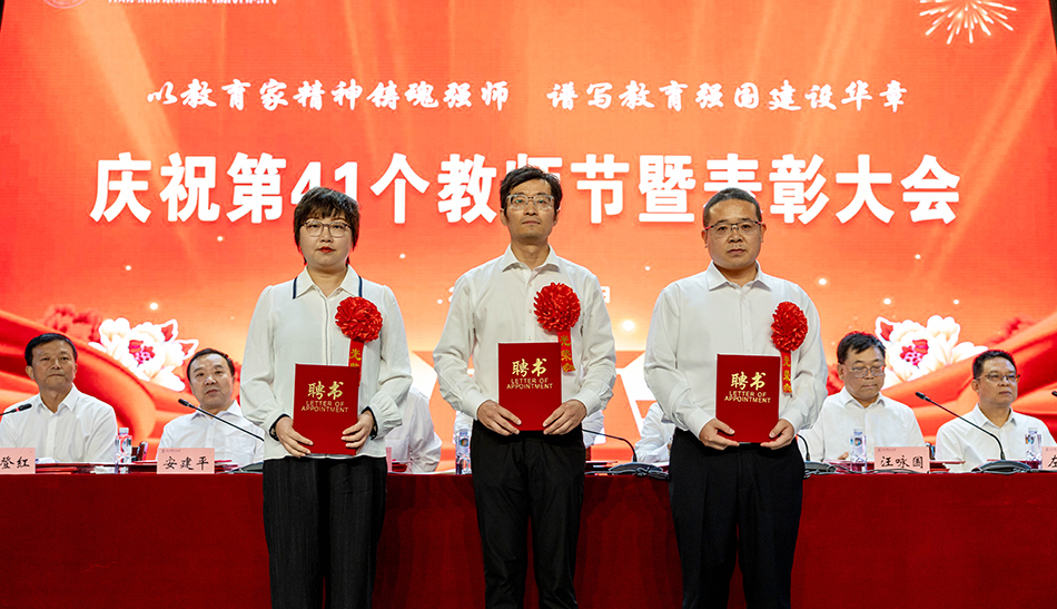 大会宣读了2024年以来我校入选甘肃省领军人才、第五批甘肃省飞天学者特聘计划以及第三批陇原青年英才的教师名单,并通报了近期我校教师在全国和全省各类竞赛中的获奖情况。随后,与会领导为上述入选人才工程、竞赛获奖教师,以及荣获2024-2025学年度“三全育人”先进个人和先进集体颁发了荣誉证书和奖牌,同时为光荣从教30年的教师和获“我最喜爱的老师”称号的教师颁发了纪念章。