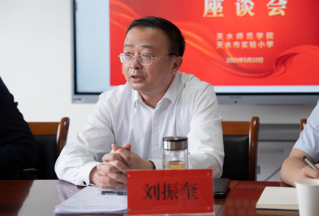 刘振奎感谢基地全体教职工对我校教育硕士专业实践工作的大力支持和辛勤付出。他指出,学校与天水市第一中学、天水市实验小学通过共建联合培养基地建立了稳定高效的合作机制,并在研究生招生、培养方案修订、专业实践等工作中取得了显著成效。刘振奎强调,学校各单位要进一步强化部门协同,优化实践基地建设;实习生要珍惜实践机会,坚守初心,高质量完成专业实践任务;研究生处及相关学院要与实践基地在课程开发、师资培训、课题研究等领域深化合作,为天水地区教育工作作出更大贡献。